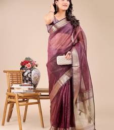 Purple color zari border orgenza saree with blouse