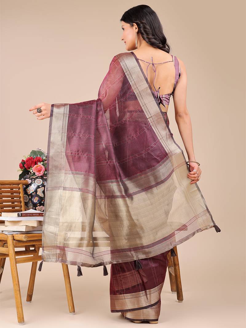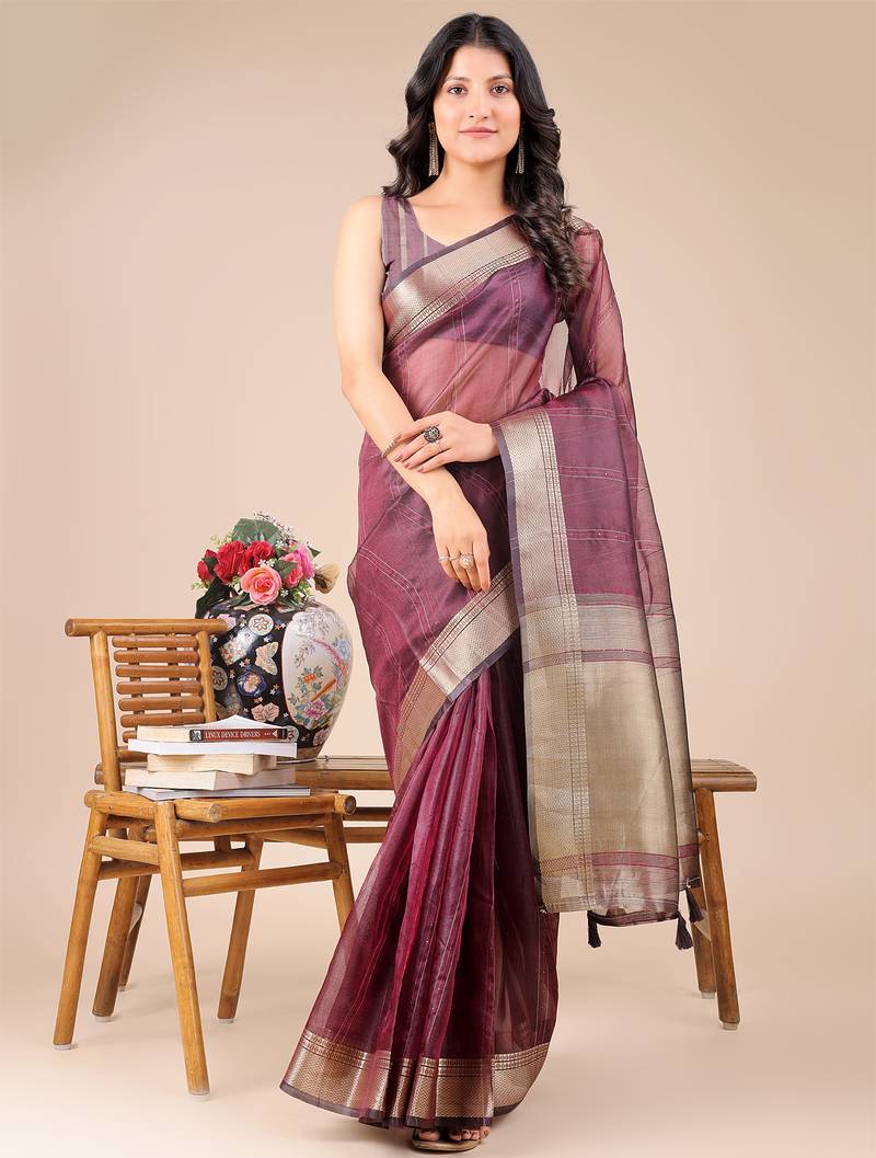 | Product Name | Purple Color Zari Border Orgenza Saree With Blouse | |