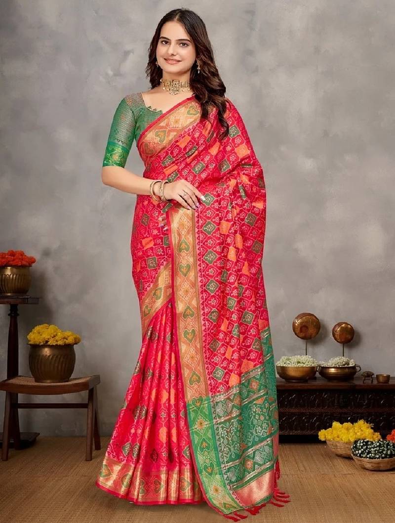Rani pink color jacquard weaving silk  couple combo men's kurta & pajama koti & women saree set