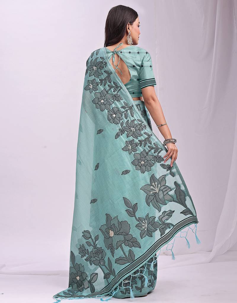 | Product Name | Sea Green Color Embroidred Linen Cotton Saree | |