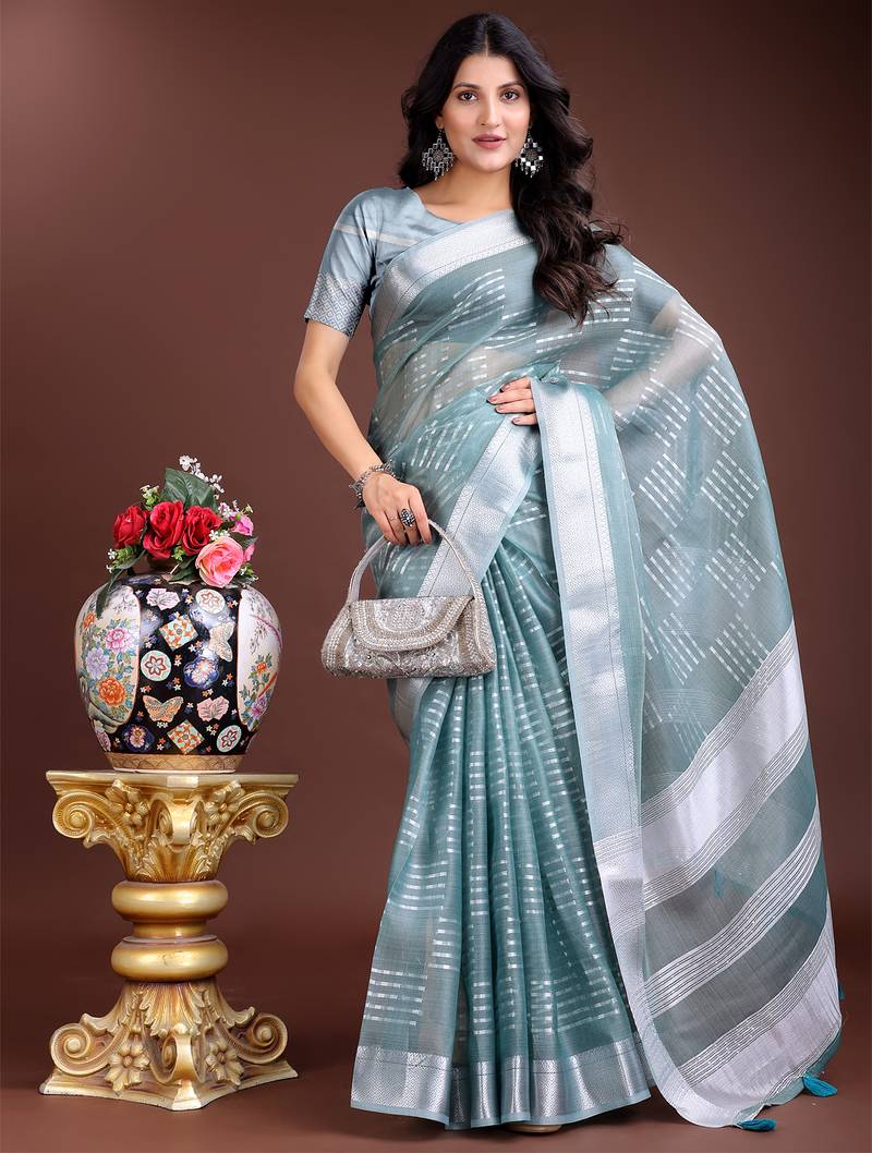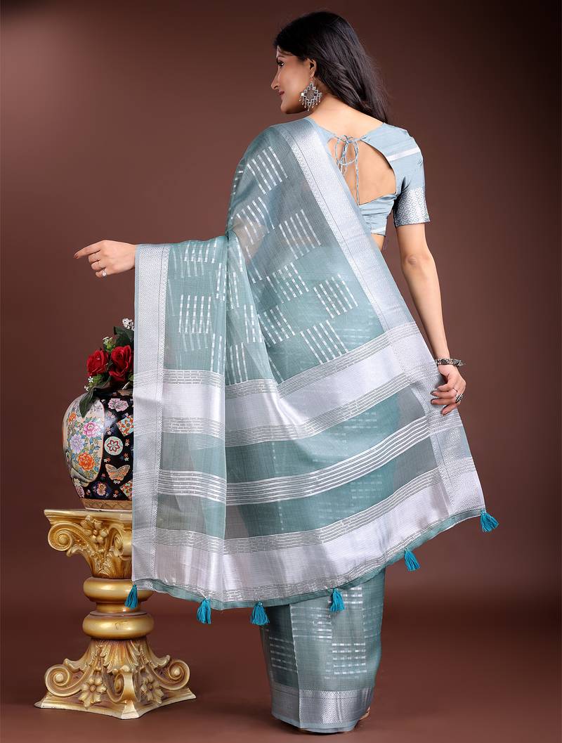 | Product Name | Sea Green Color Lining Orgenza Zari Border Saree | |