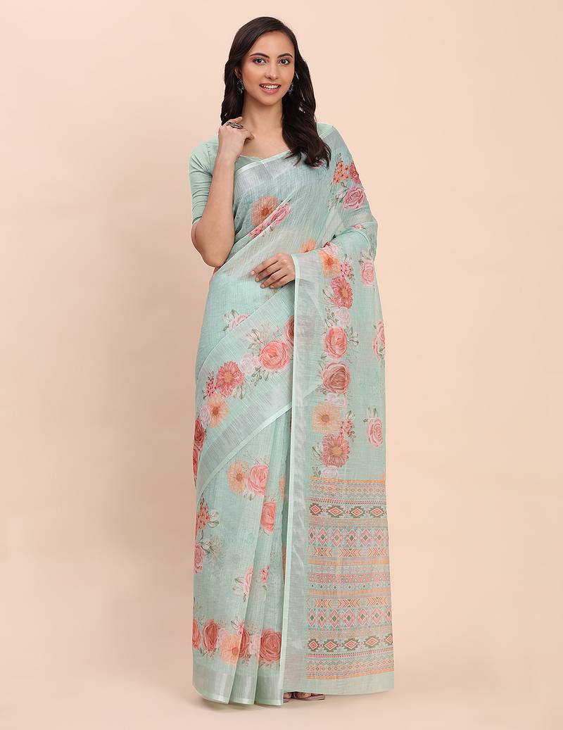 | Product Name | Sea Green Color Printed Linen Cotton Saree | |