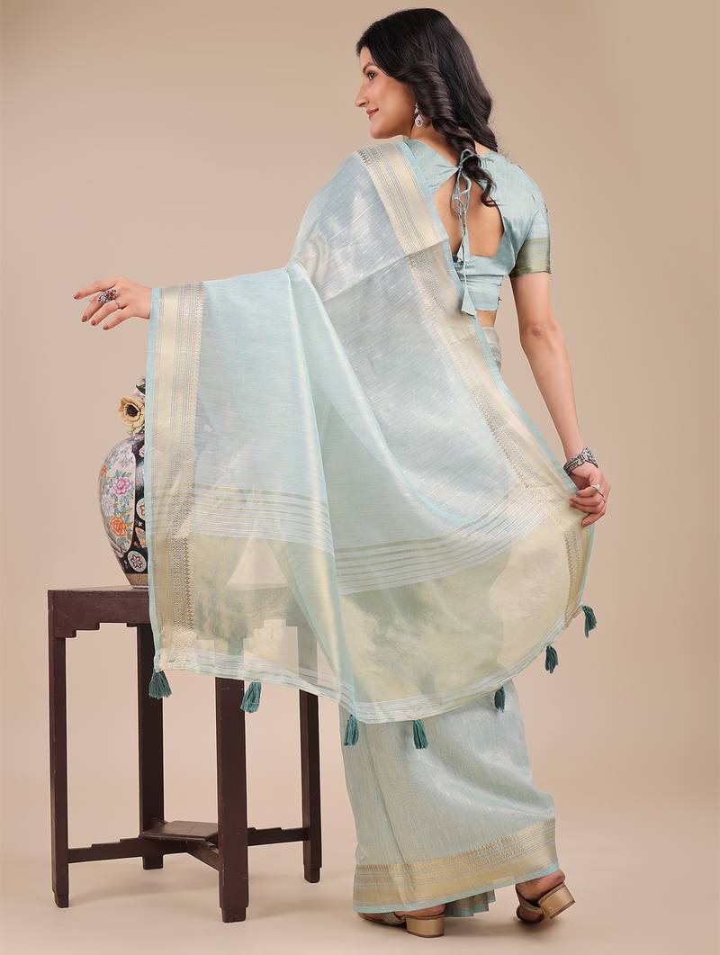 | Product Name | Sea Green Color Solid Plain Orgneza Saree | |