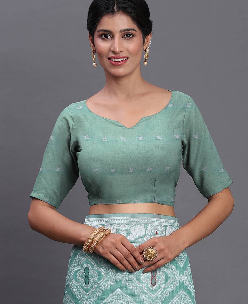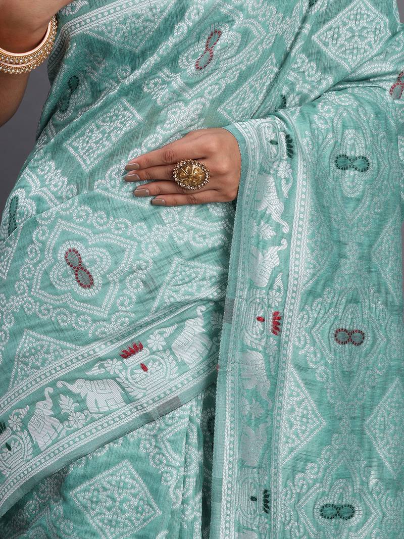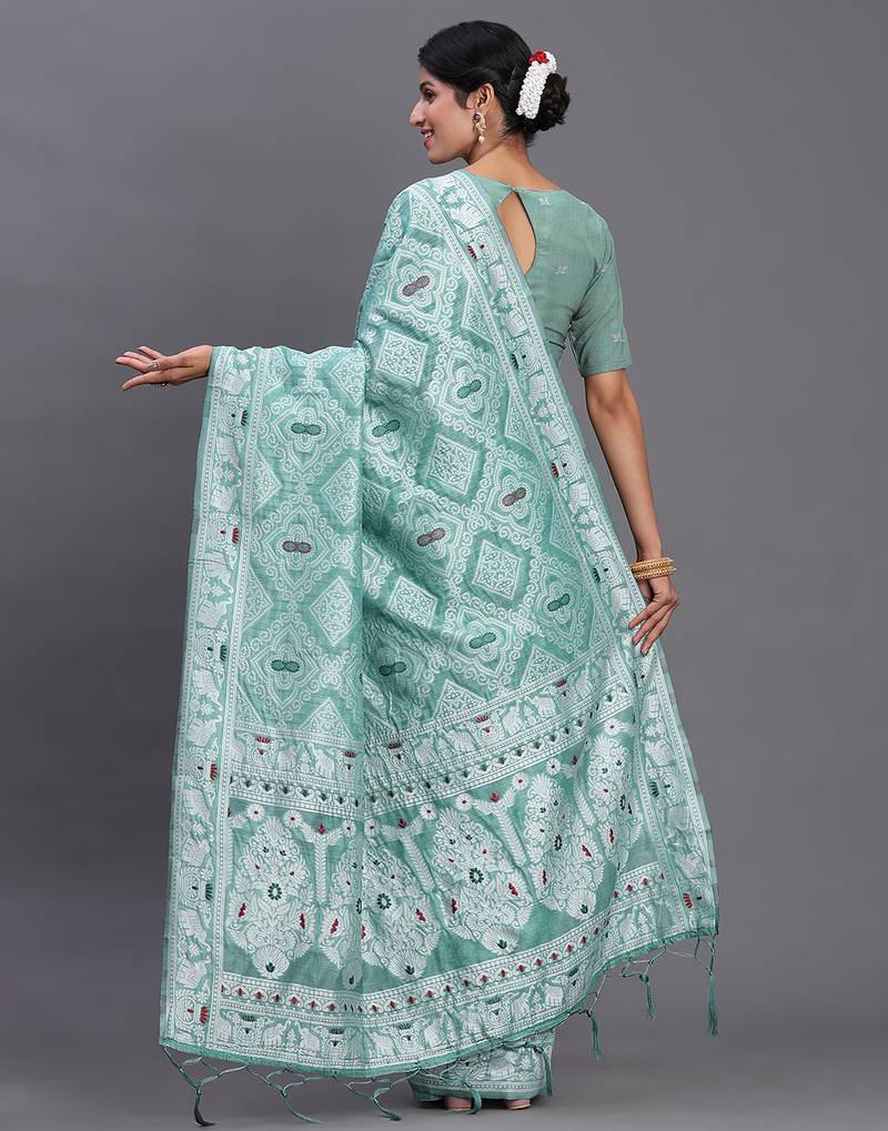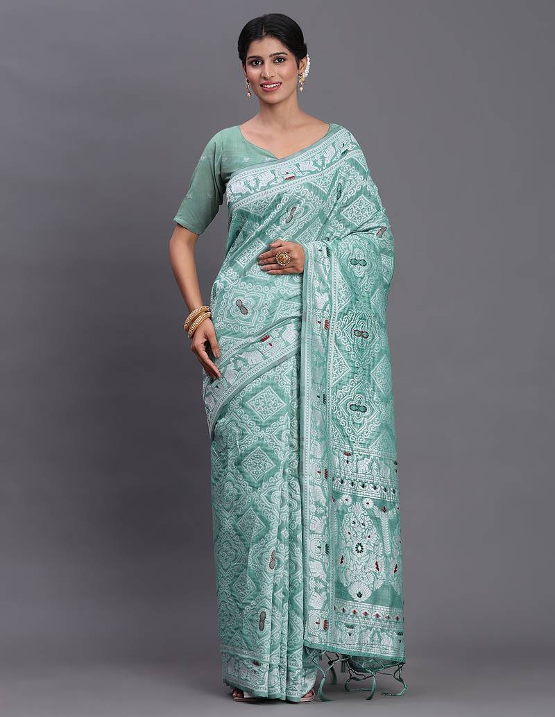 | Product Name | Sea Green Color Woven Linen Cotton Saree With Blouse | |