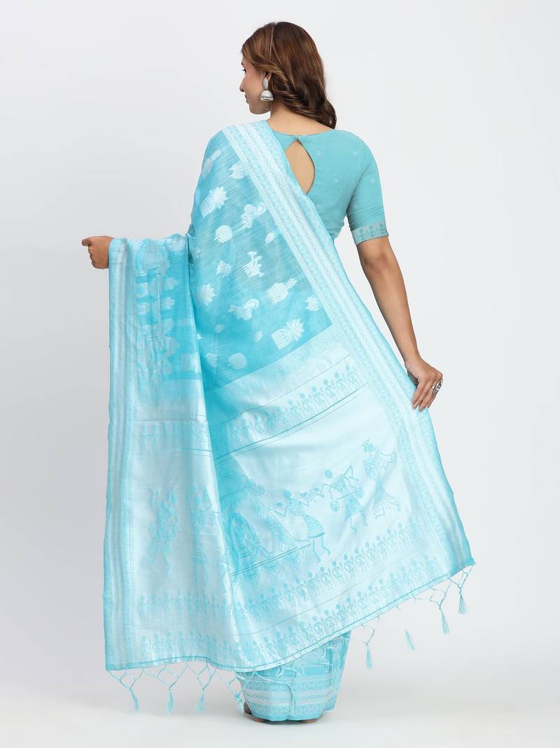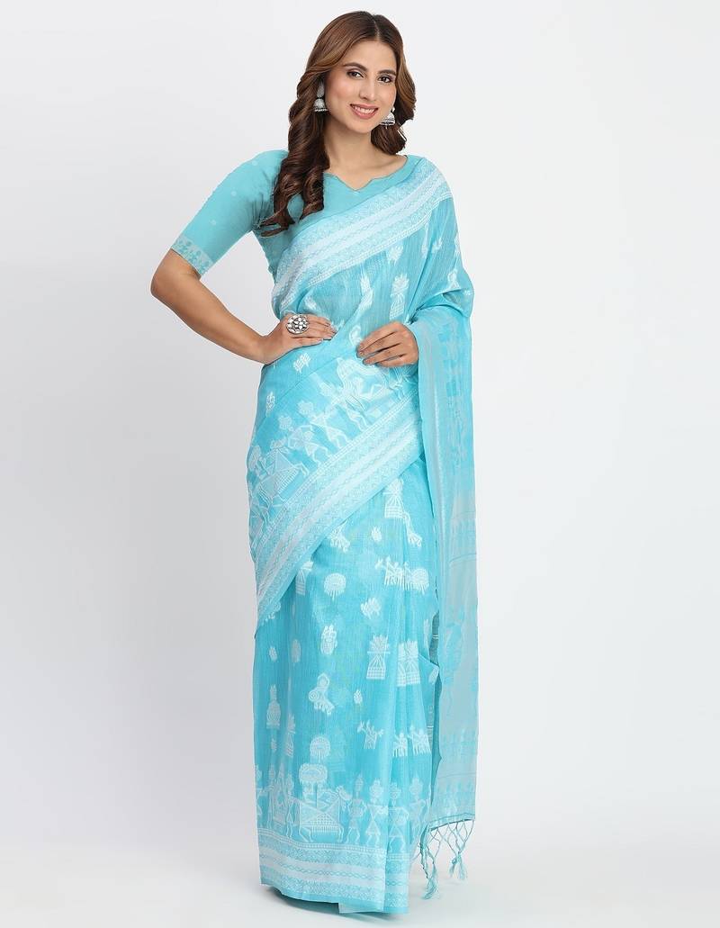 | Product Name | Sky Blue Color Embroidered Linen Cotton Saree | |