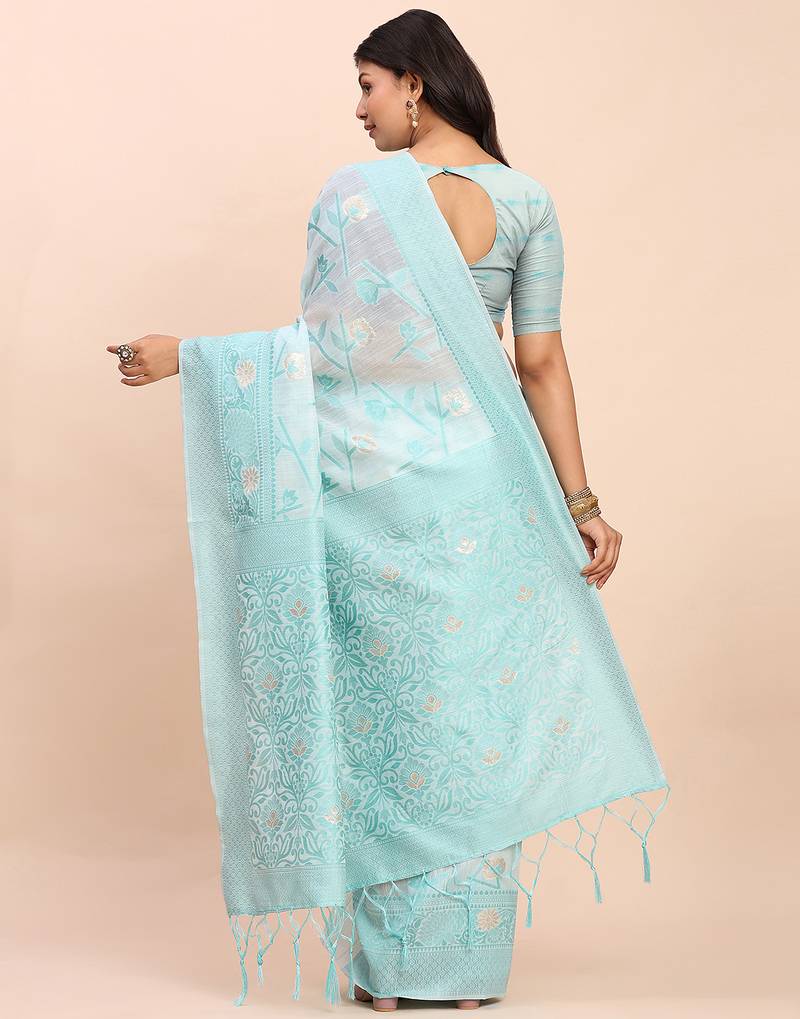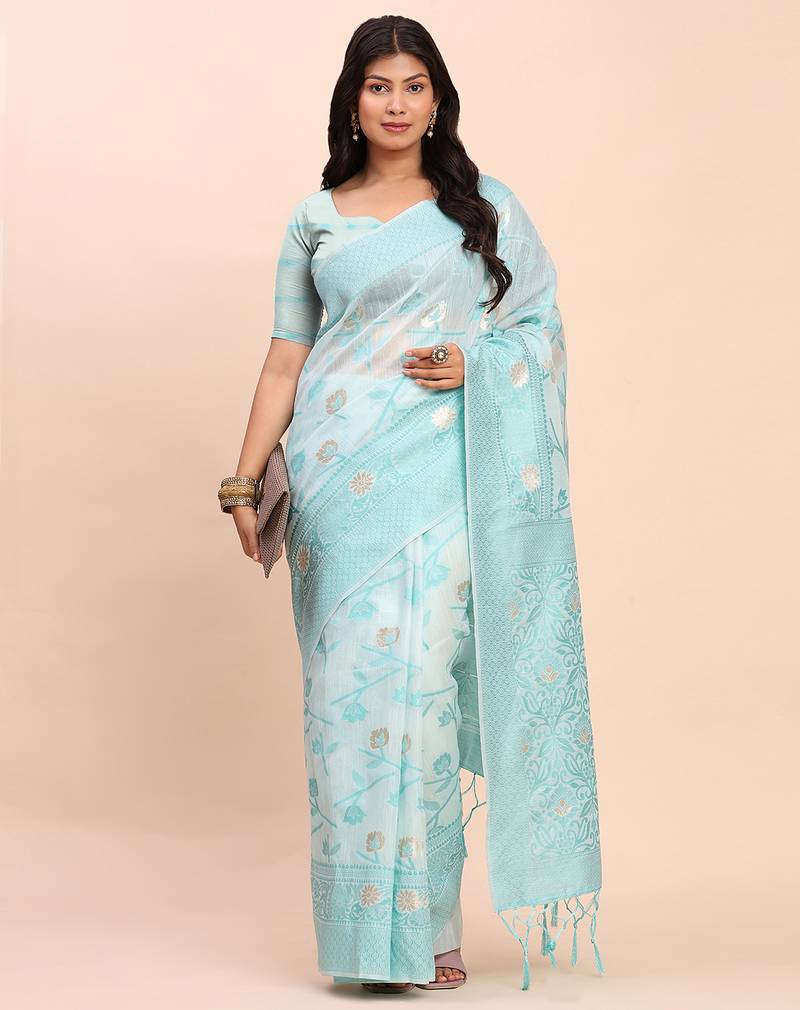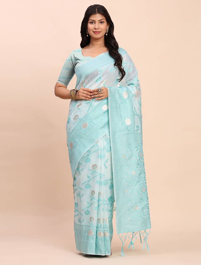 | Product Name | Sky Blue Color Linen Cotton Woven Saree With Blouse | |