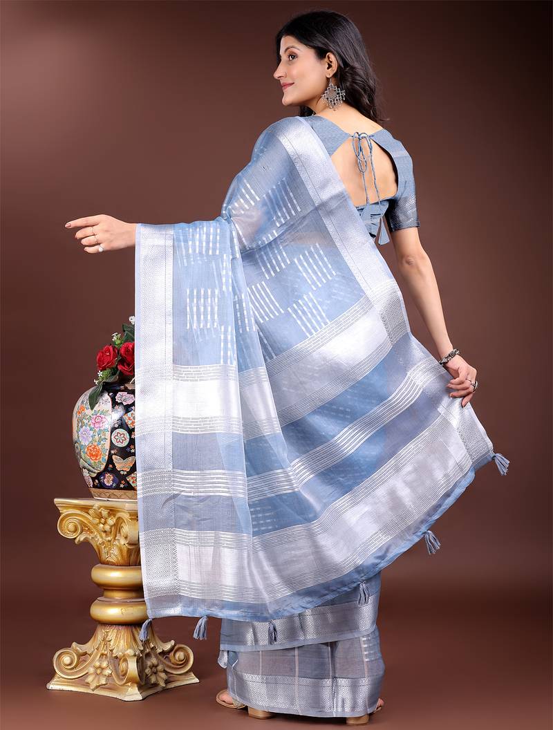| Product Name | Sky Blue Color Lining Orgenza Zari Border Saree | |