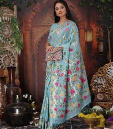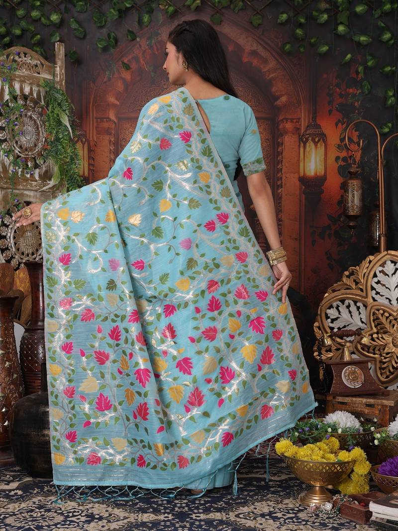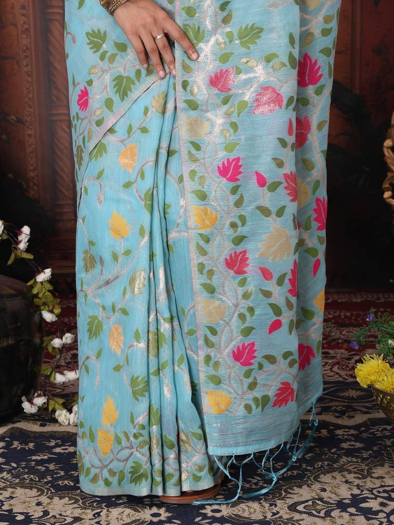 | Product Name | Sky Blue Color Weaven Flower Linen Cotton Saree | |