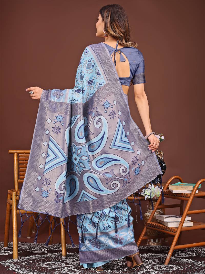 | Product Name | Sky Blue Color Woven Linen Cotton Saree | |