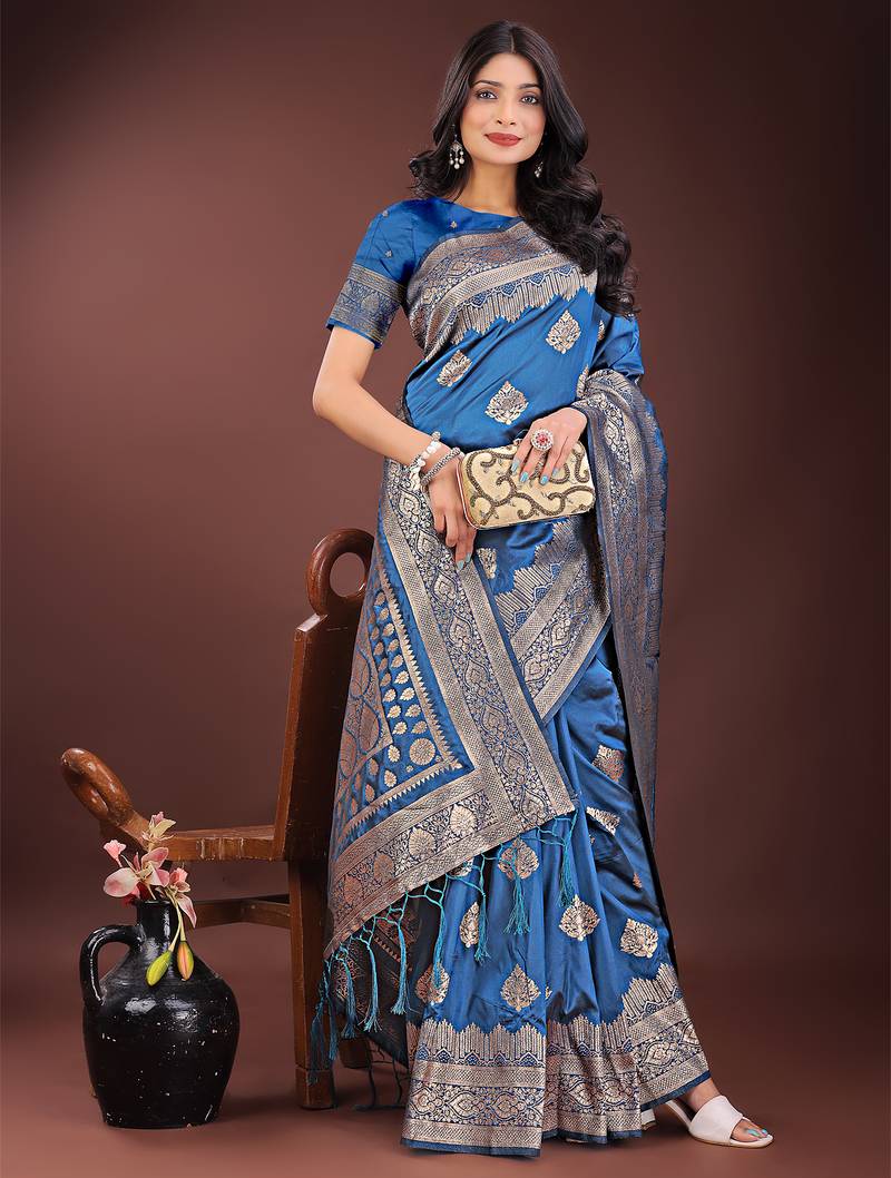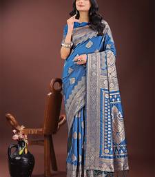 Sky blue color woven art silk saree with blouse