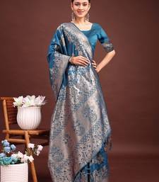 Teal blue color zari woven banarasi art silk saree