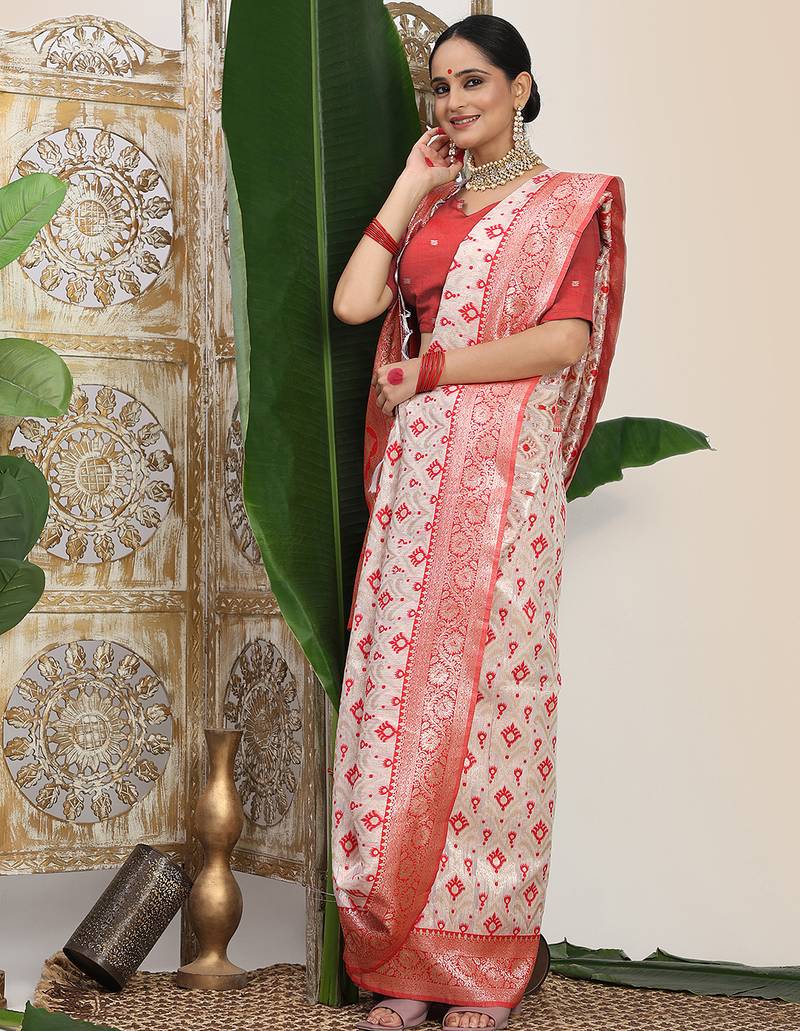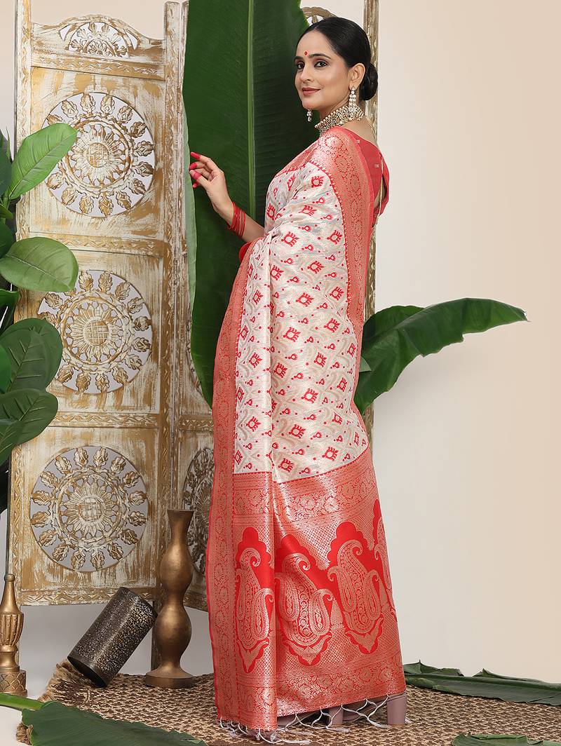 | Product Name | White & Red Color Zari Woven Linen Cotton Art Silk Saree | |