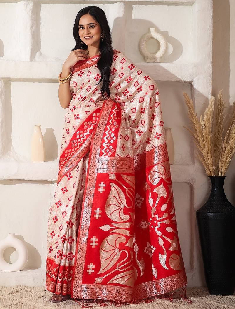 | Product Name | White & Red Color Zari Woven Linen Cotton Art Silk Saree | |