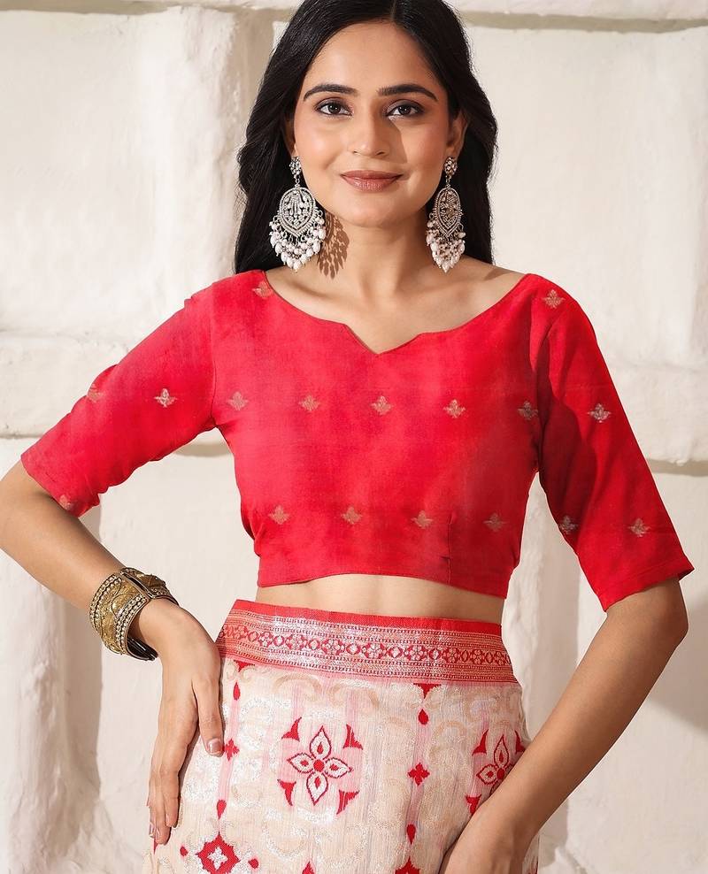 | Product Name | White & Red Color Zari Woven Linen Cotton Art Silk Saree | |