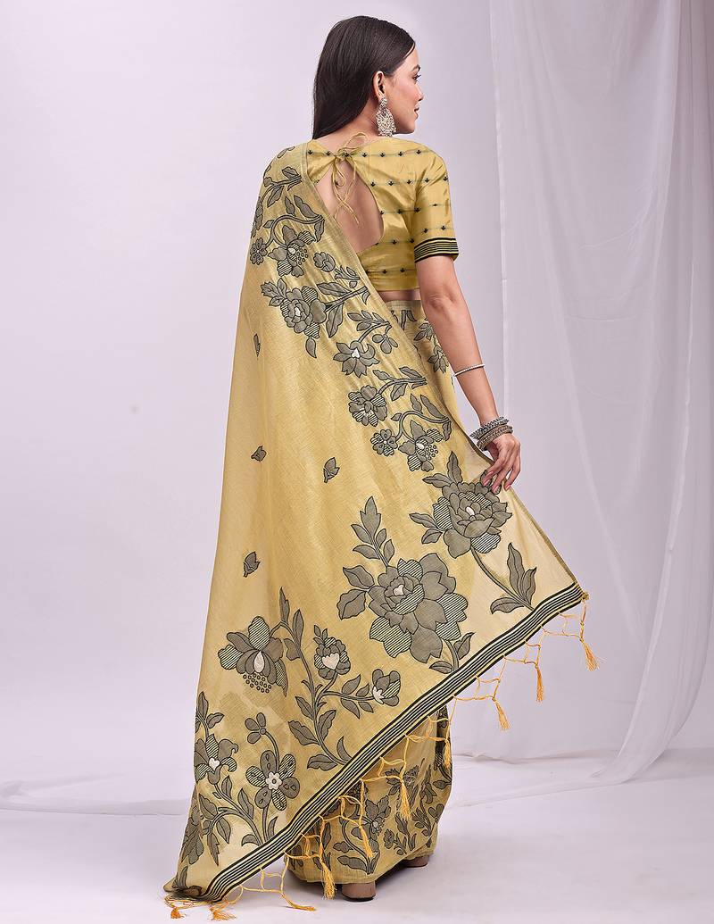 | Product Name | Yellow Color Embroidred Linen Cotton Saree | |