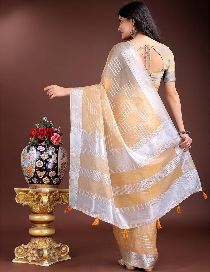 | Product Name | Yellow Color Lining Orgenza Zari Border Saree | |