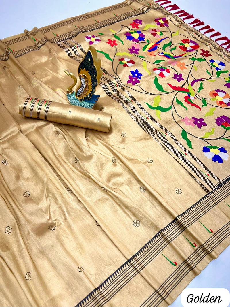 Product Name Golden Tissue Paithani Silk Saree With Zari Weave