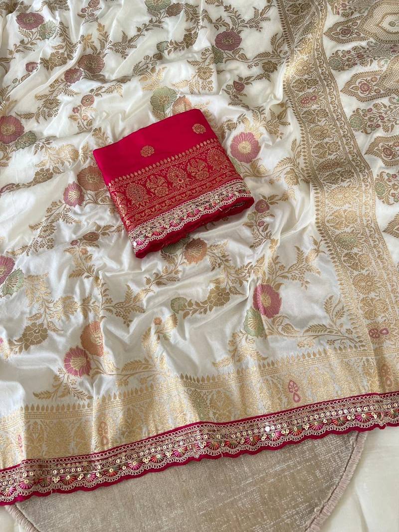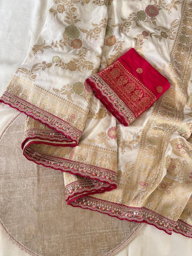 🆕 *Saree With New Amazing Embroidery Cording Sequance And Thread Work Border In Full Saree*🧵 🌺 *The *Rich And High Quality Soft, Flowing Pure Dola Silk Sarees With Meenakari N Zari Weaving Body And Zari Pallu Woven Pairs And Embroidered Koding Sequence Work Border Lace* Weight: *Approx 800 Gm* |