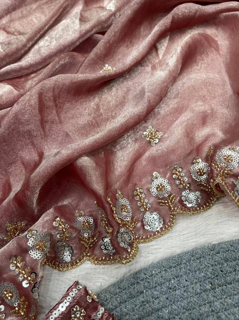 | • | Saree | : | Color- Pink / Fabric- Satin |