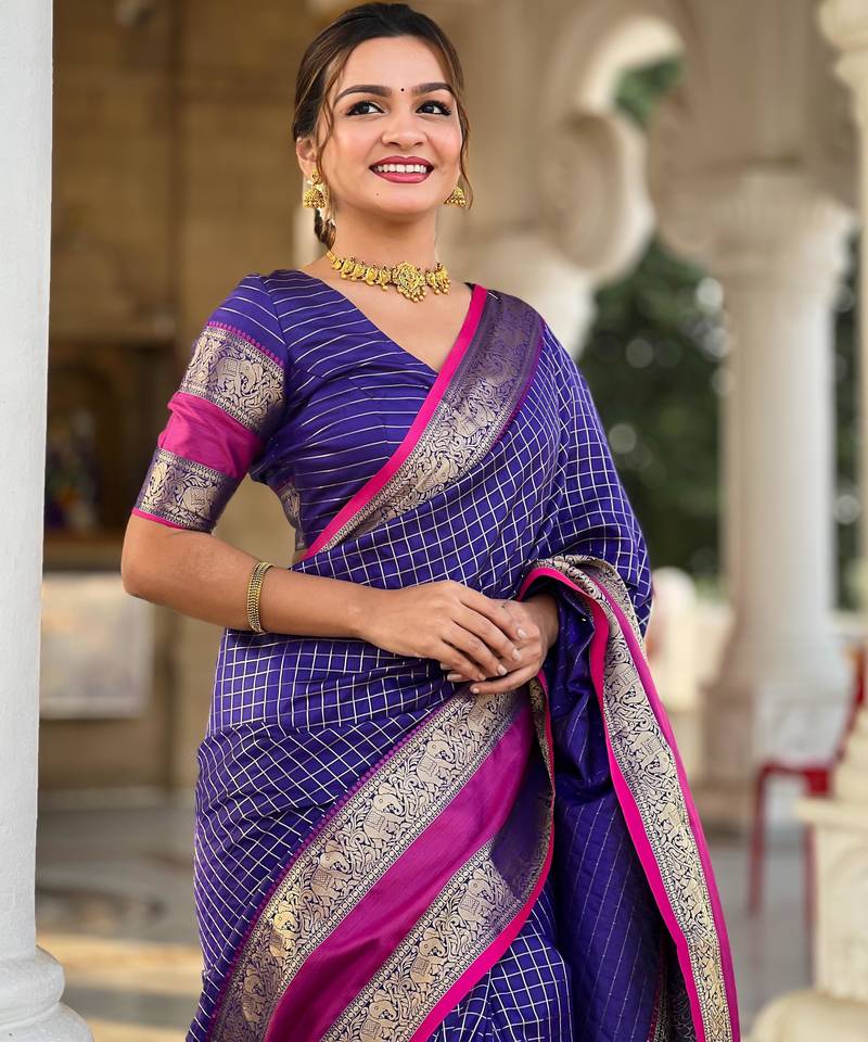 | Product Name | Purple Checks Design Kanjivaram Art Silk Saree | |