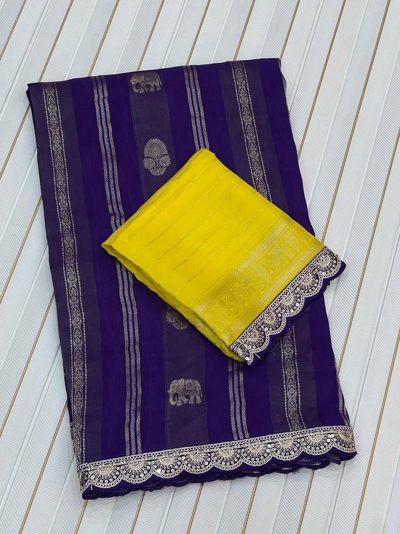 🌺 *The *Rich And High Quality Soft, Flowing Pure Viscose Georgette Silk Sarees With Zari Weaving Body And Zari Pallu Woven Pairs Woven Embroidery Cording Sequance Border*
