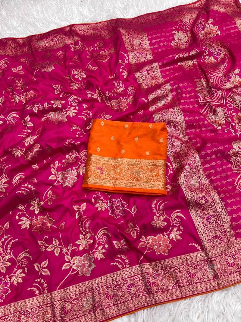 | Product Name | Rani Pink Color Traditional Dola S Ilk Blnd Wedding Saree | |