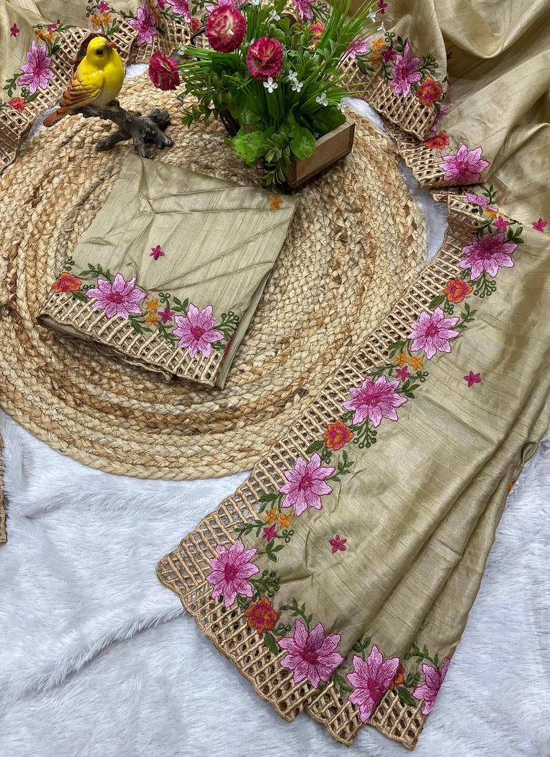 | Product Name | Cream Color Multi Thread Embroidery Work Manipuri Silk Saree | |