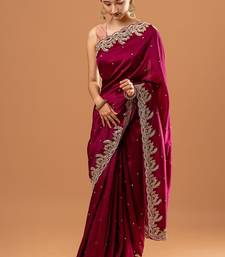 Dark rani pink color rangoli silk rivet work and embroidery sequence with zari work saree