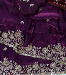 Plum color beads and sequence embroidery work space silk blend saree