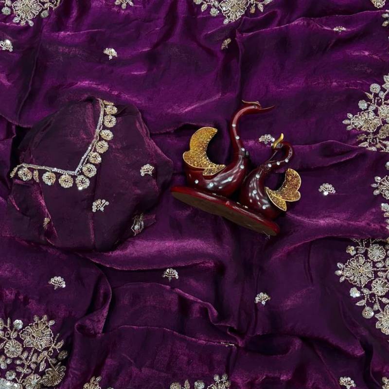 | Product Name | Plum Color Beads And Sequence Embroidery Work Space Silk Blend Saree | |