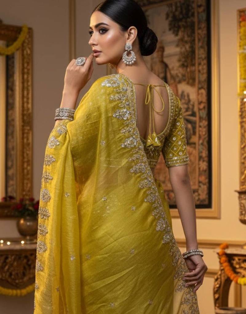 | Product Name | Yellow Color Embroidery Work Of Beads & Sequins Work Fendy Satin Silk Blend Saree | |