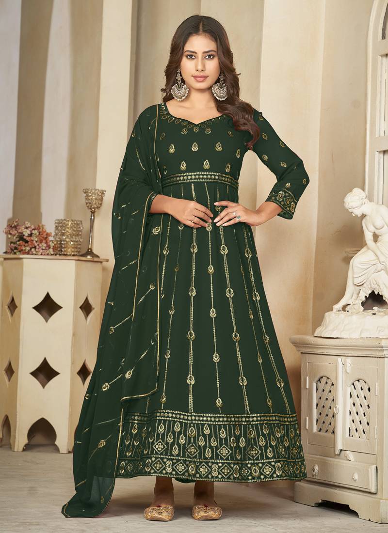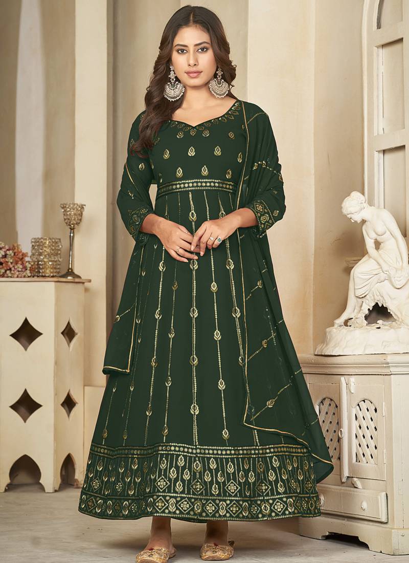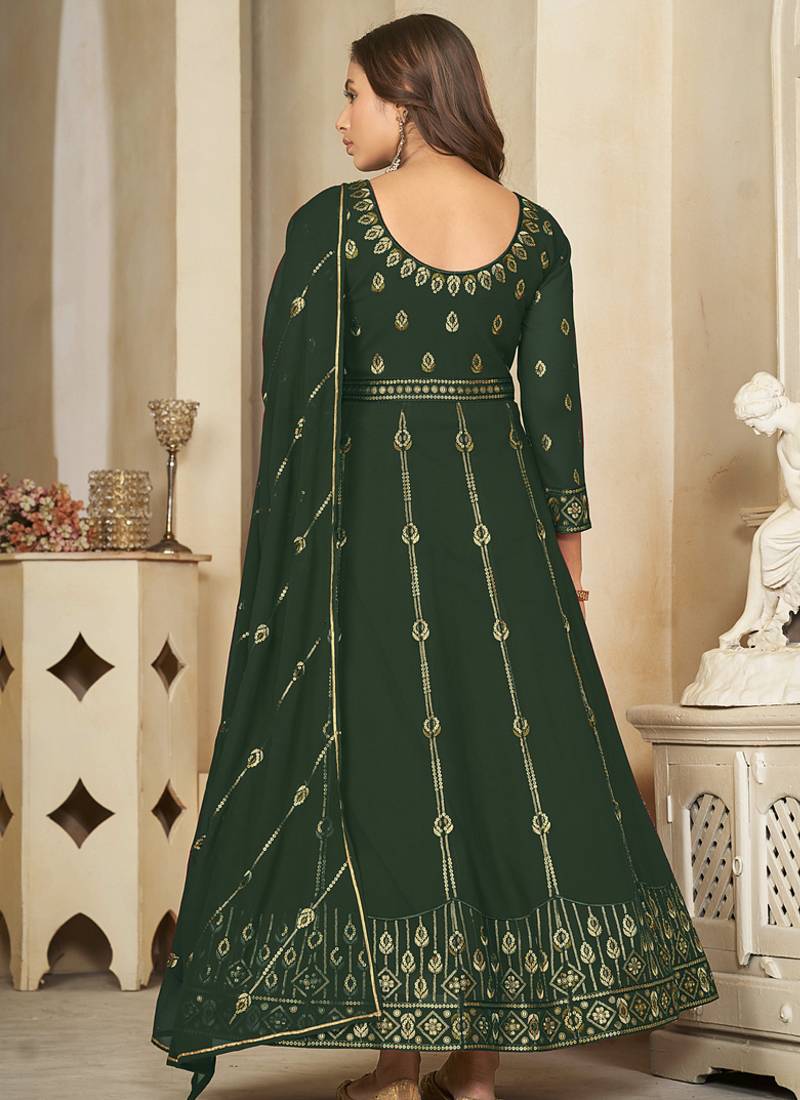 Green georgette embroidered wedding wear anarkali suit semi stitched