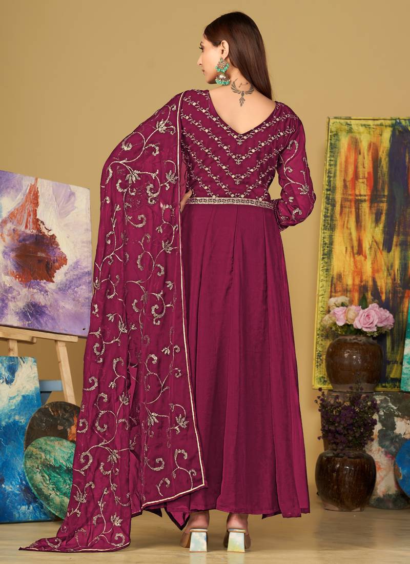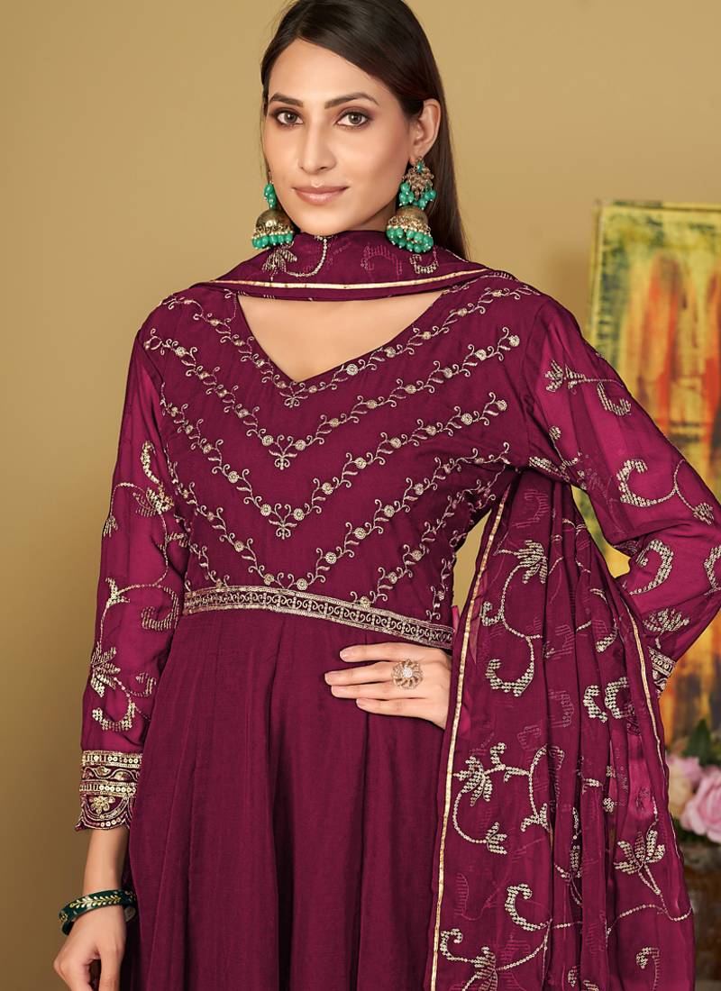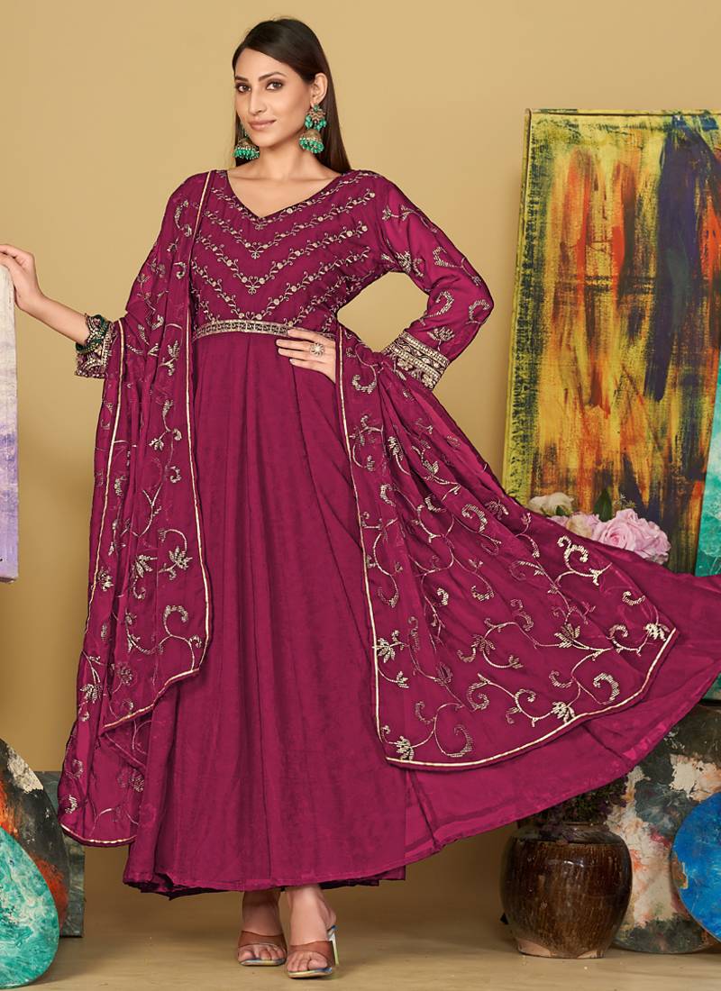 Pink georgette embroidered wedding wear anarkali suit semi stitched