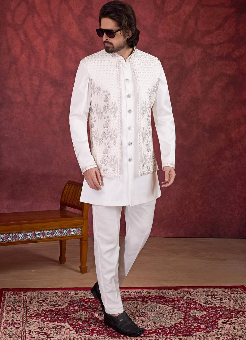| Product Name | Cream Art Silk 3 Piece Indo Jacket Set For Men | |