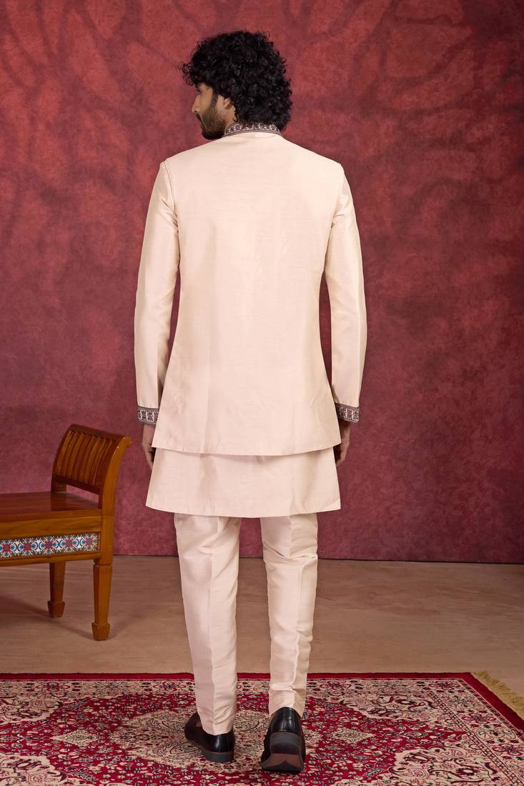 | Product Name | Cream Art Silk 3 Piece Indo Jacket Set For Men | |