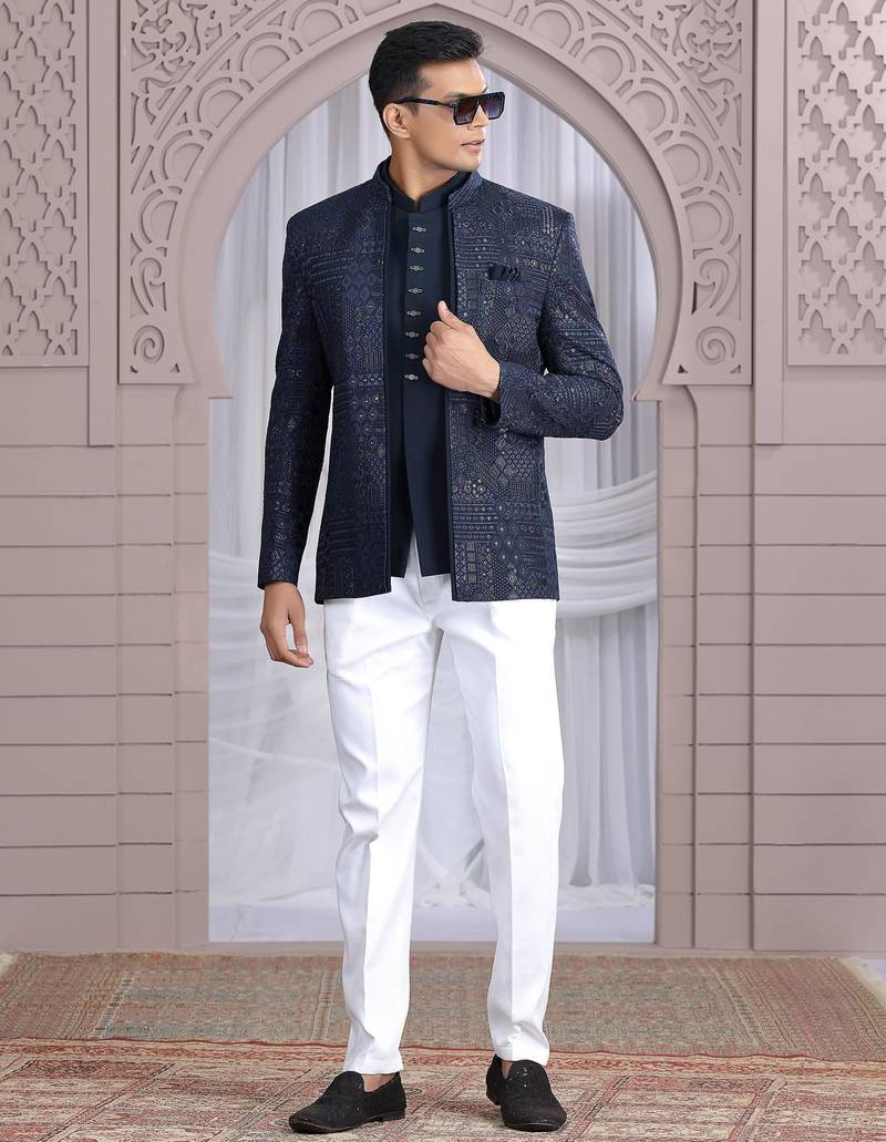 | Product Name | Navy Blue Art Silk 3 Piece Bandhgala Only | |