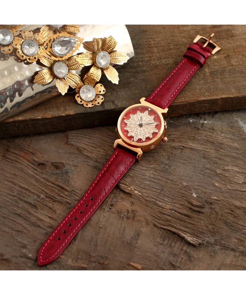 | Product Name | Magenta Flower Design Classy Revolving Dail Watch | |