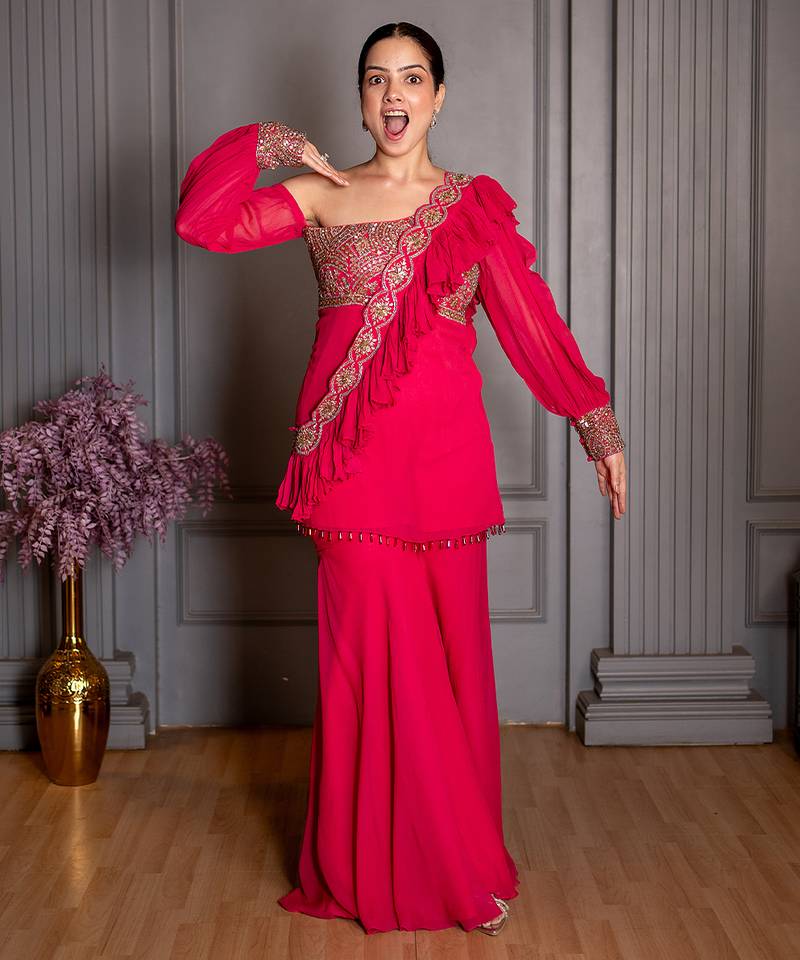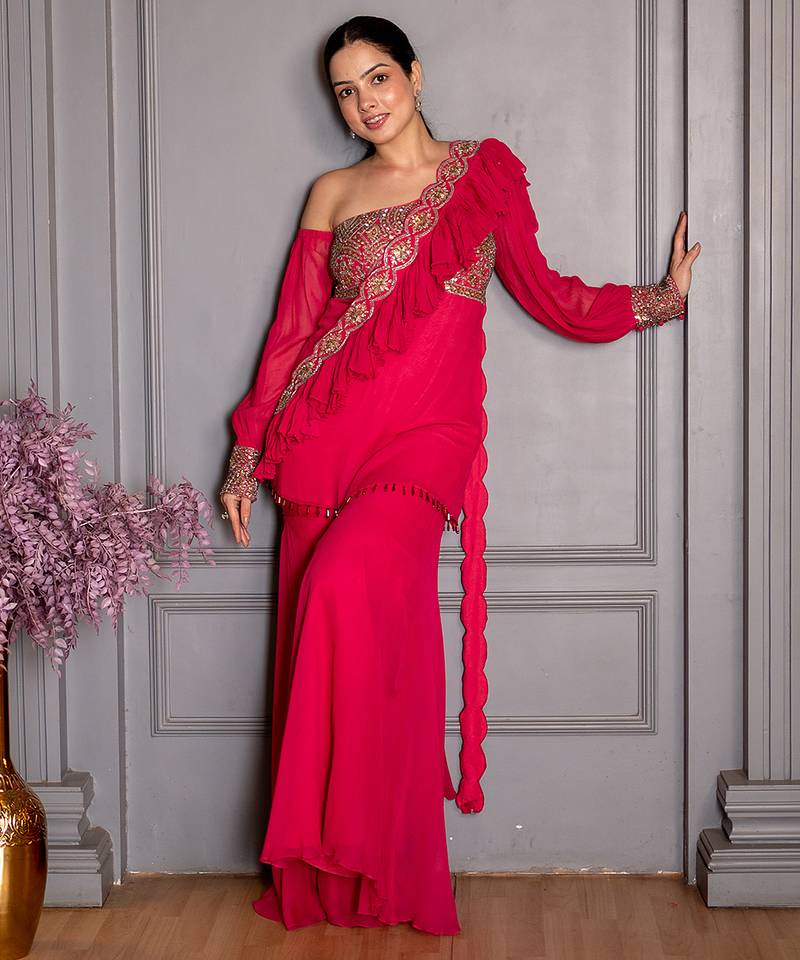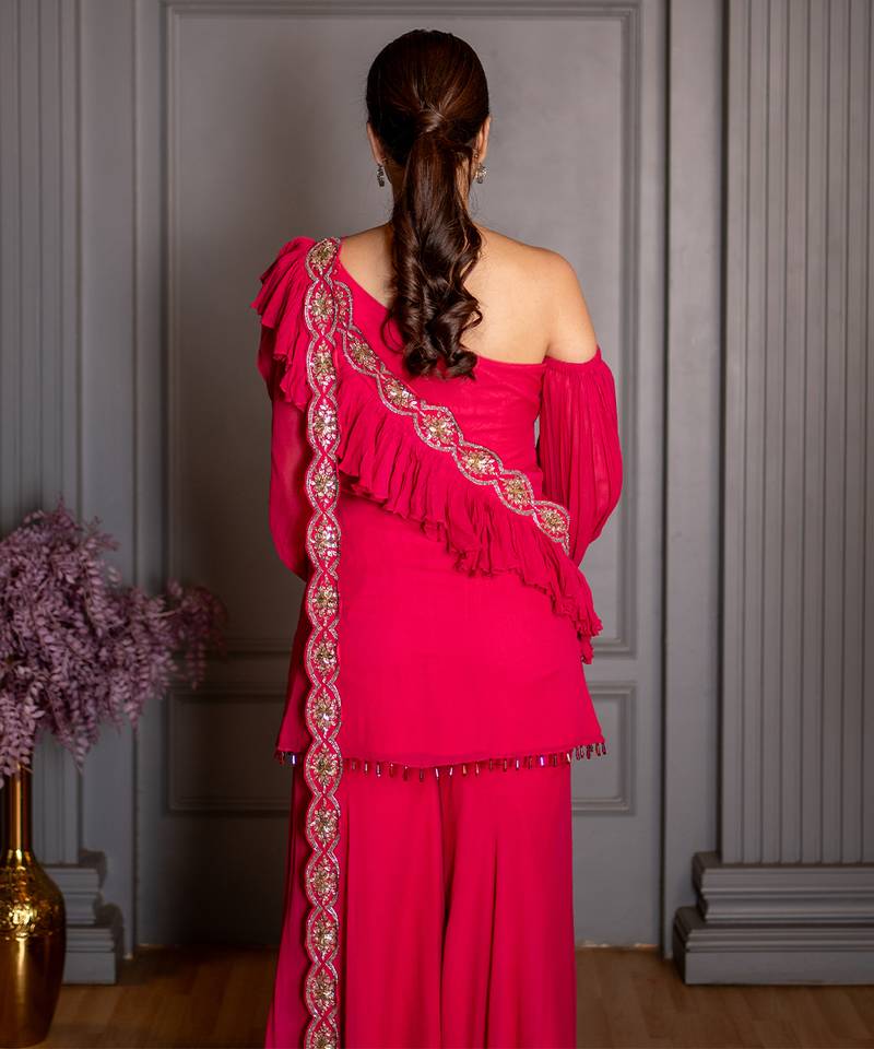 | Product Name | Pink Embroidered Georgette Gharara Set | |
