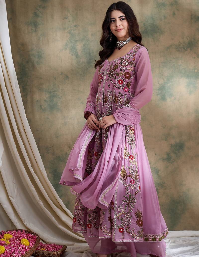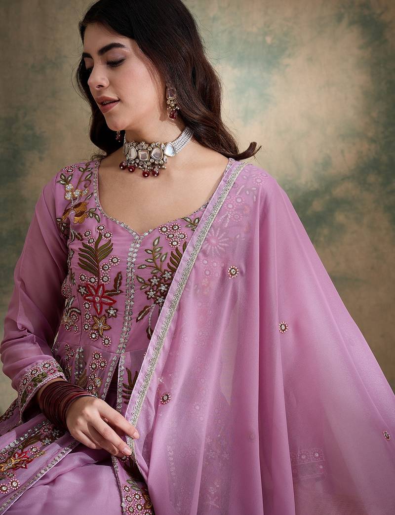 Pink Vipro Silk anarkali style long choli readymade lehenga