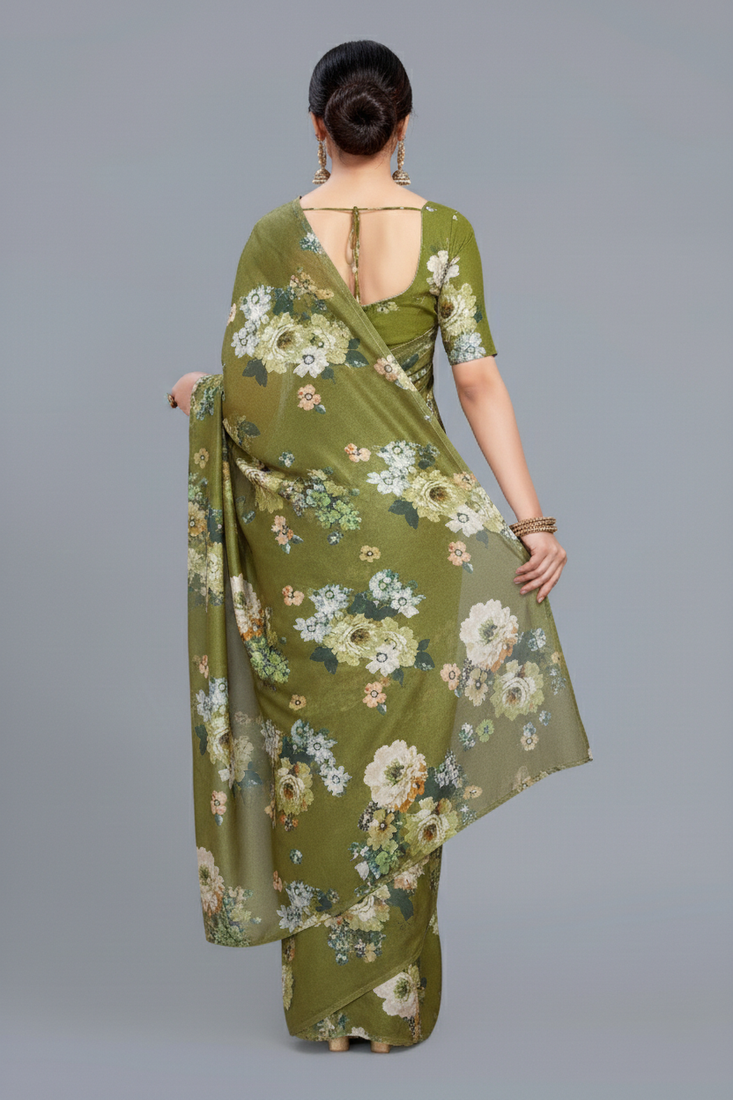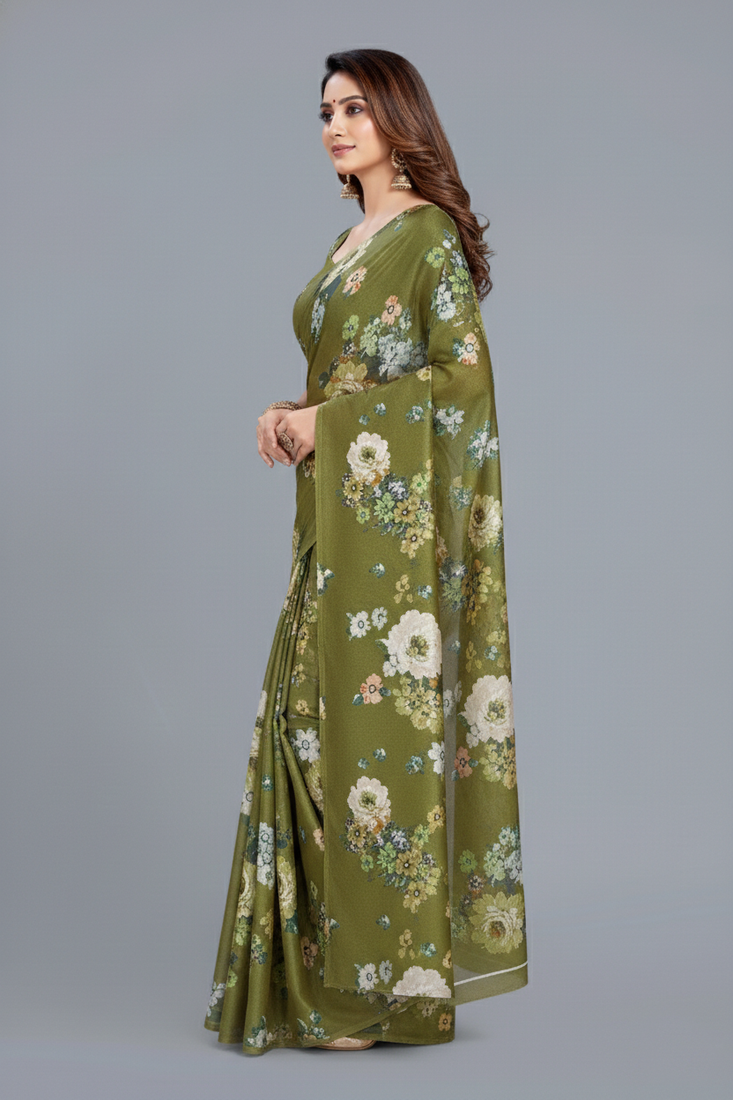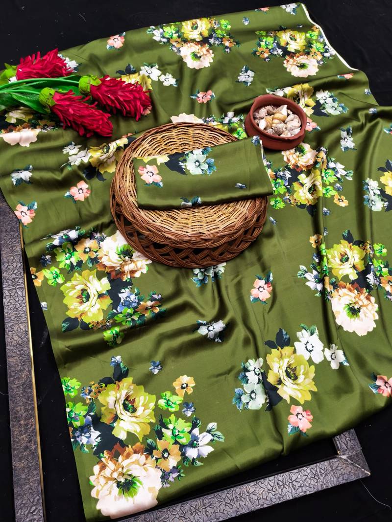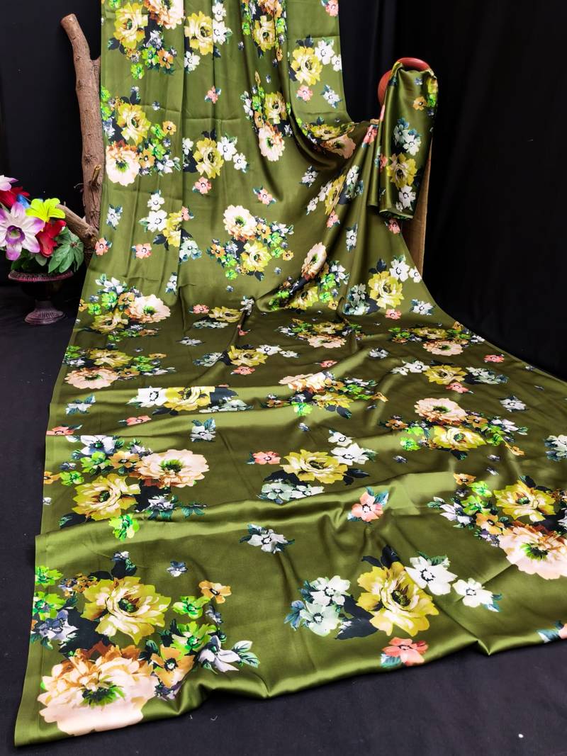 | Product Name | Green Printed Satin Saree With Blouse Piece | |