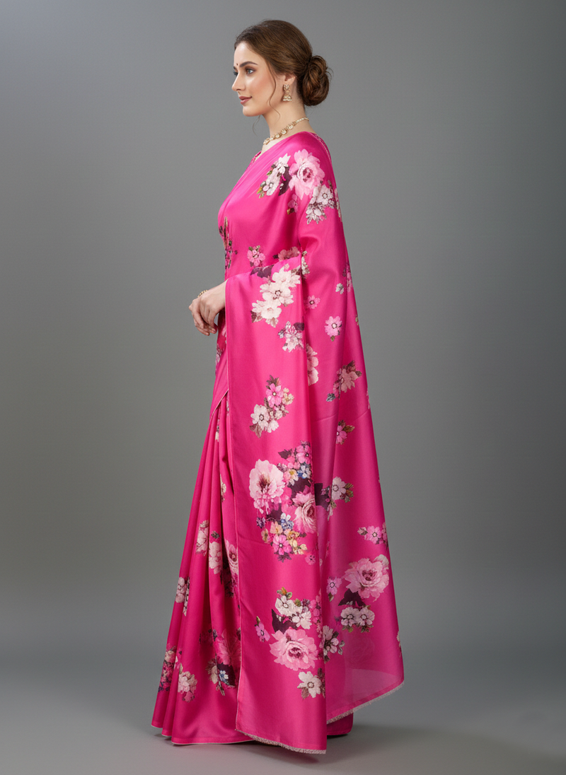 | Product Name | Pink Printed Satin Saree With Blouse Piece | |