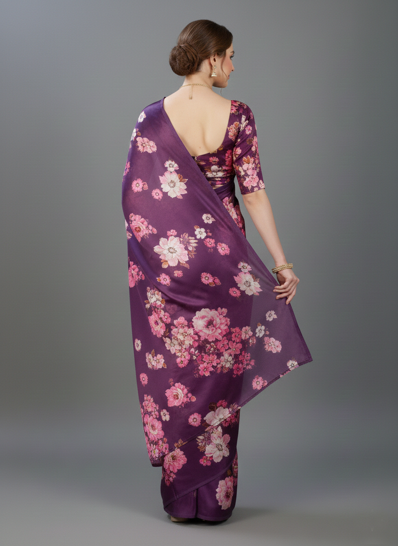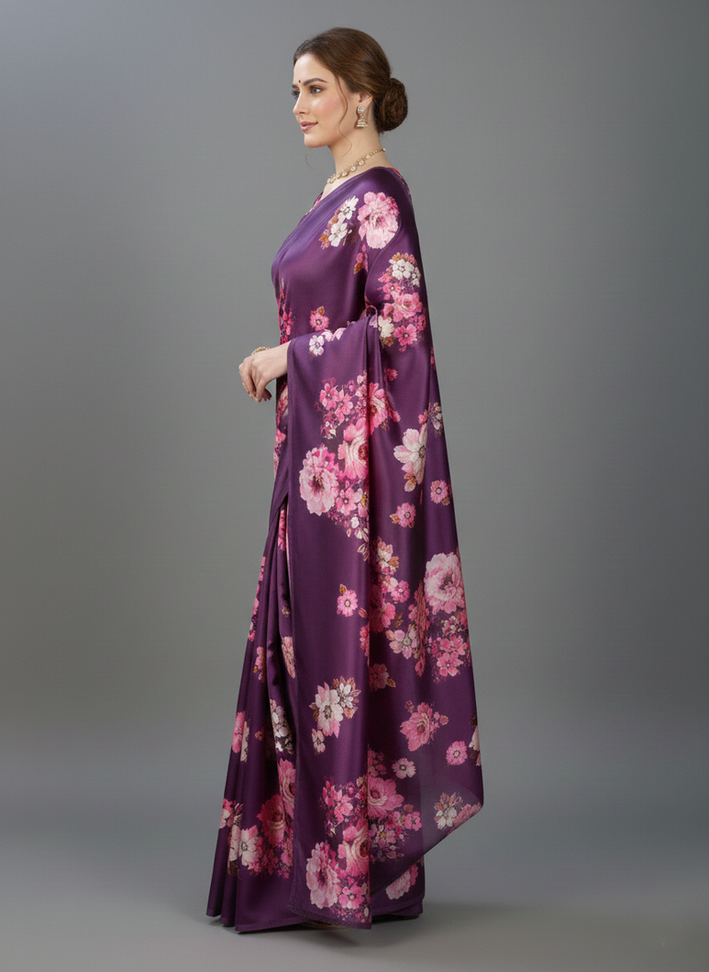 | Product Name | Purple Printed Satin Saree With Blouse Piece | |
