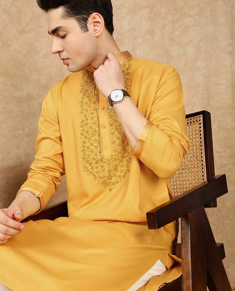Product Name | Mustard Cotton Embroidered Kurta For Men | |
