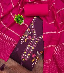 | Product Description | Wedding Perfect Heavy Multi Thread Embroidery, Daimond And Fancy Border With Designer Dupatta Straight Style 2.00 Mtr Unstitched Dress Material Top Of Purple Colour Jaam Cotton Fabric With 2 Mtr Semi Leon As Lining Inner Fabric Also Including 3.80 Mtr Unstiched Bottom Material Of Magenta Colour Semi Leon Fabric With 2.00 Mtr Dupatta Of Magenta Colour Chanderi Fabric By Shadow & Saining Brand |