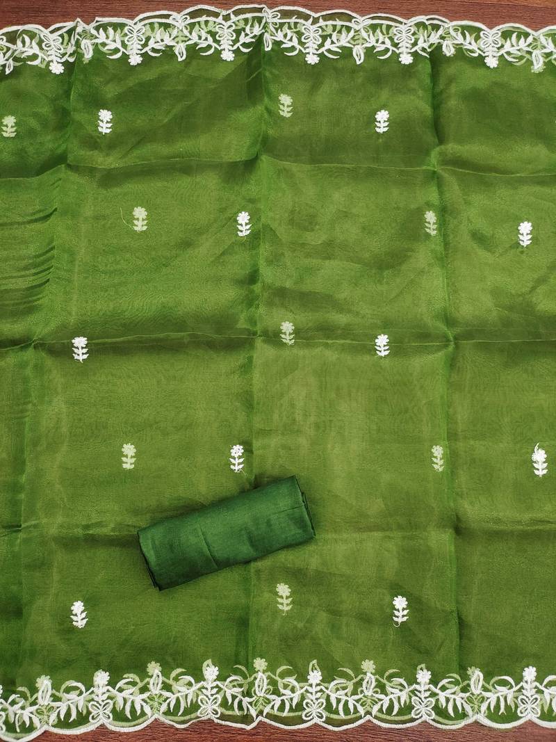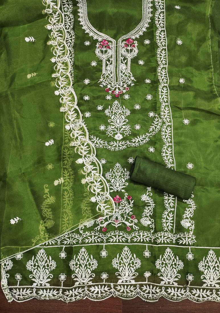 | Product Name | Green Embroidered Organza Semi Stitched Churidar Dress Materials | |