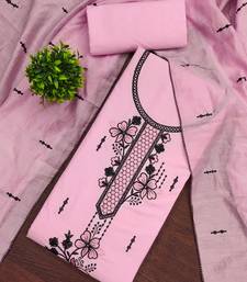 Baby-pink embroidered cotton semi stitched churidar dress-materials