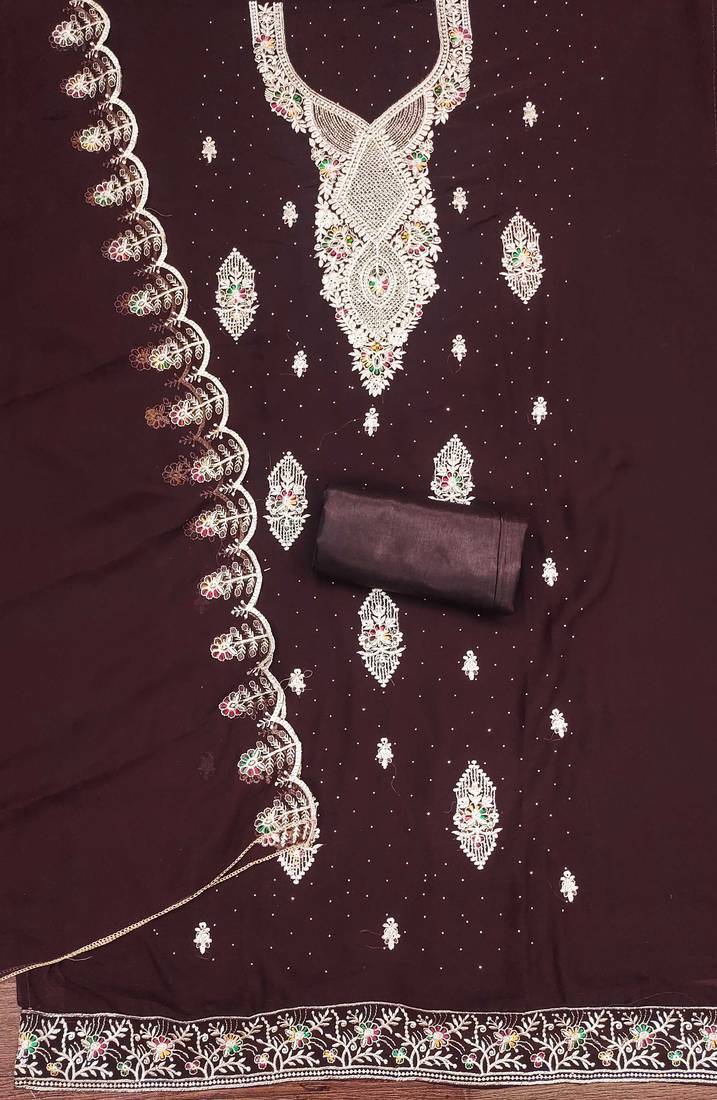 | Product Name | Brown Embroidered Georgette Semi Stitched Churidar Dress Materials | |