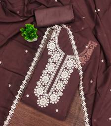 Brown embroidered georgette semi stitched churidar dress-materials
