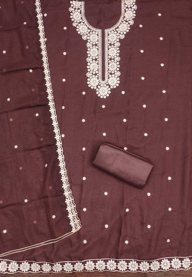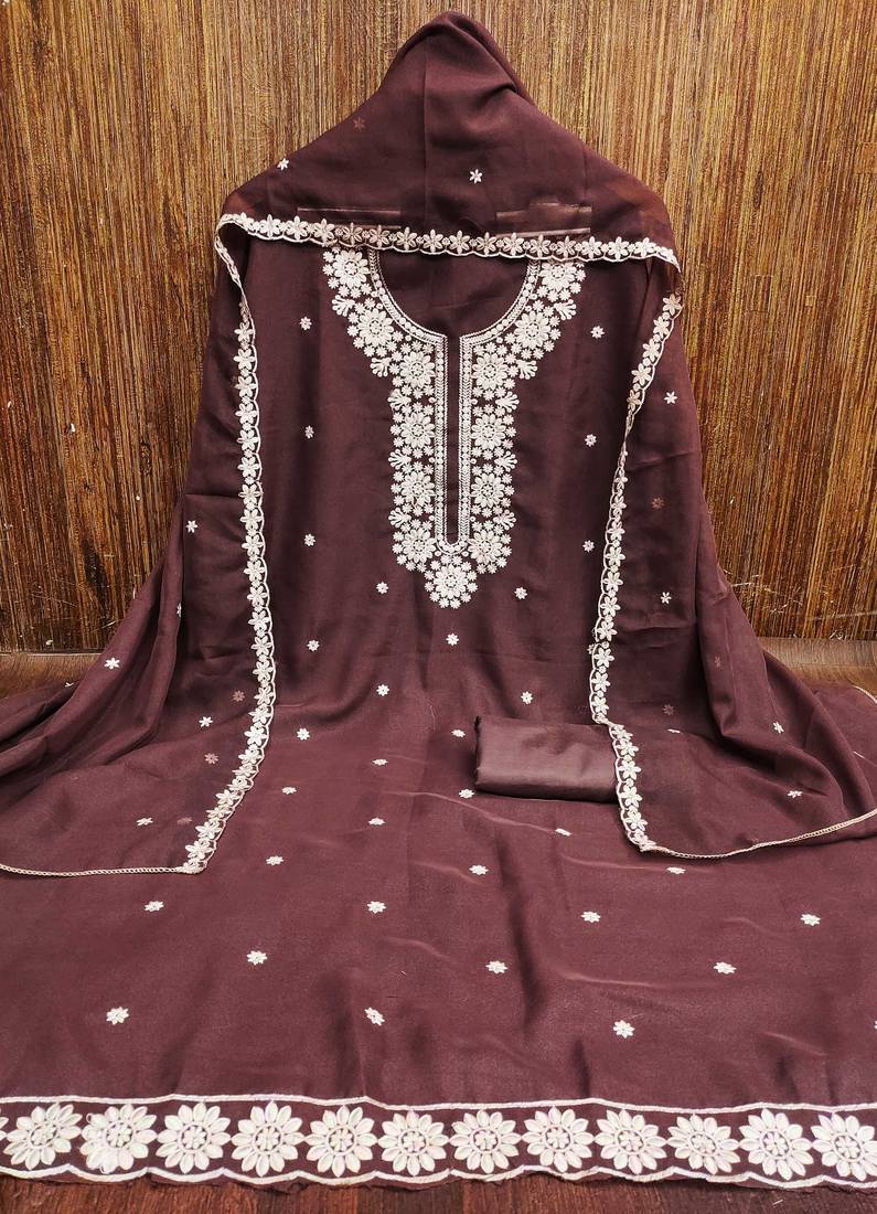 | Product Description | Festive Ready Heavy Thread Embroidery And Fancy Border With Designer Embroidered Dupatta Straight Style 2.00 Mtr Unstitched Dress Material Top Of Brown Colour Georgette Fabric With 2 Mtr Santoon As Lining Inner Fabric Also Including 3.60 Mtr Unstiched Bottom Material Of Brown Colour Santoon Fabric With 2.00 Mtr Dupatta Of Brown Colour Georgette Fabric By Shadow & Saining Brand |