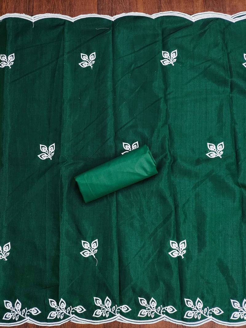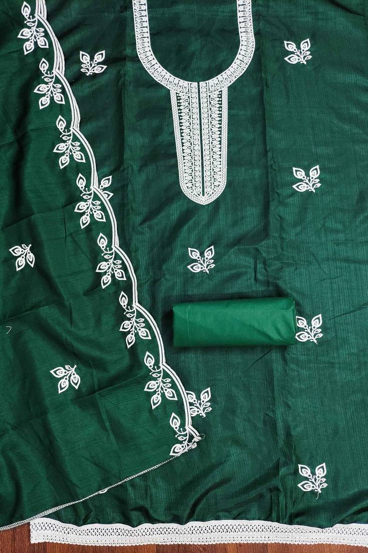 Curated Heavy Thread Embroidery And Fancy Border With Embroidered Dupatta Straight Style 2.00 Mtr Unstitched Dress Material Top Of Green Colour Cotton Fabric Also Including 2.00 Mtr Chudidar Style Bottom Piece Material Of Green Colour Cotton Fabric With 2.00 Mtr Dupatta Of Green Colour Cotton Fabric By Shadow & Saining Brand